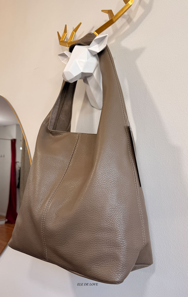 BOLSO TIPO SACO MUY COMODO PARA EL DIA DIA EN UN COLOR QUE SE COMBINA MUY BIEN CON TODO.
