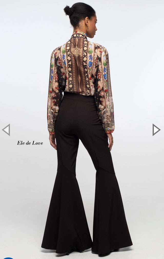 De cintura alta y bajos acampanados, nuestros pantalones Onyx evocan un refinado estilo retro. Esta versión moderna de los clásicos pantalones negros incluye detalles exclusivos de la marca, como un chaka metálico y una cremallera invisible. Combínalos con un top Opulence para un look retro.