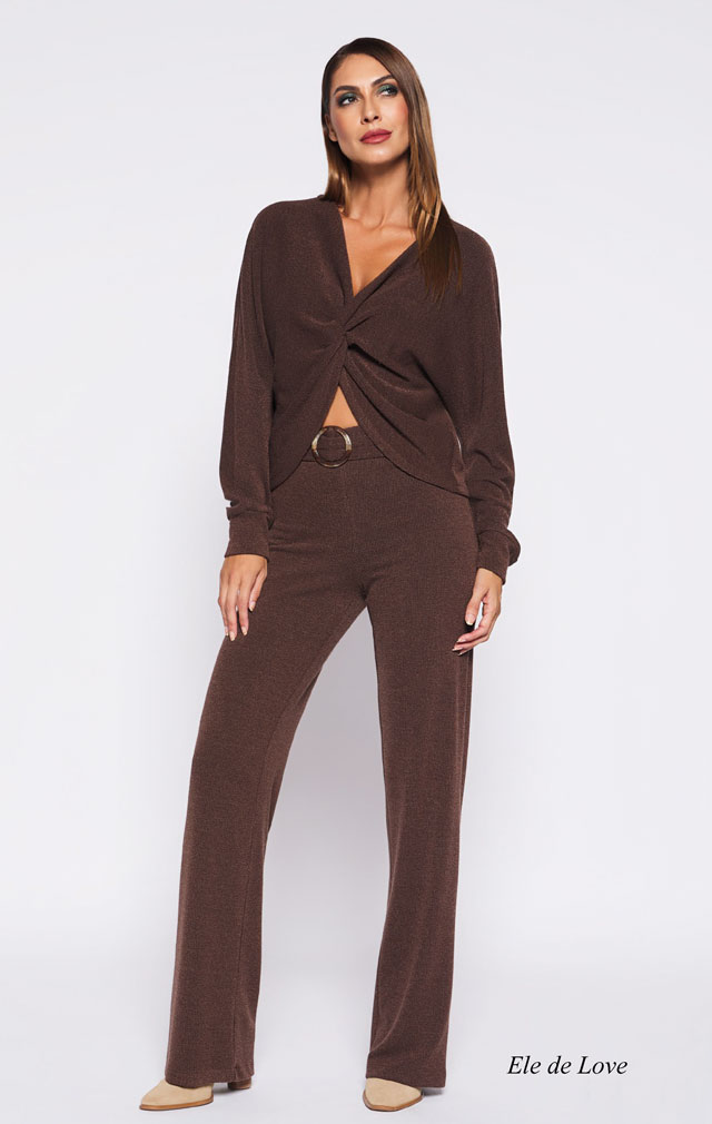 PANTALON DE PUNTO DE CORTE RECTO Y TIRO ALTO CON ELASTICO EN LA CINTURA Y HEBILLA A MODO DE CINTURON, FAVORECE MUCHO LA SILUETA ADEMAS DE SER CALENTITO Y MUY COMODO.