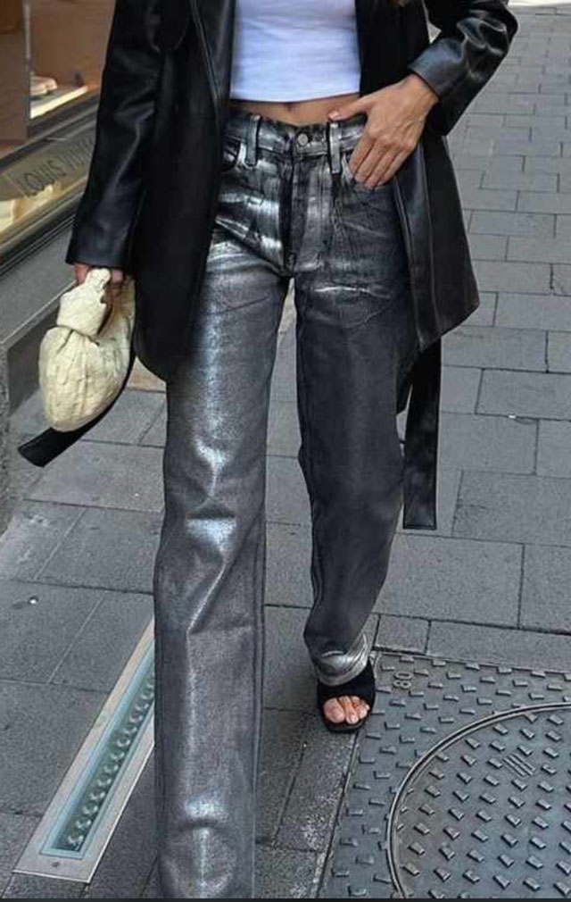 DE CORTE RECTO Y ELASTICO, TIRO MEDIO VIENE MUY BIEN DE LARGO PARA LAS ALTAS, Y TALLA BIEN LA S SE CORRESPONDE A UNA 38.