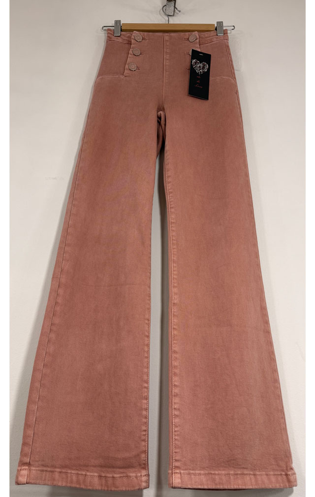VAQUERO DE CORTE RECTO LIGERAMENTE ACAMPANADO TEJIDIO ELASTICO Y DOBLE BOTONADURA DELANTERA.